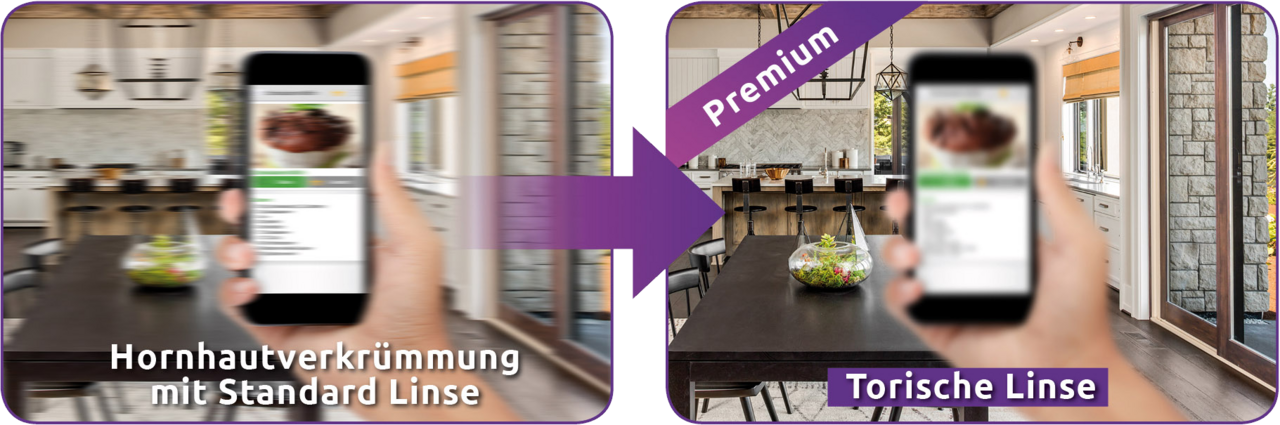 The selection ranges from simple spherical monofocal to trifocal toric lenses. In contrast to standard spherical lenses, aspherical monofocal lenses, for example, contribute to better visual acuity at a distance and less glare in low light conditions. Multifocal lenses, on the other hand, have not just one focal point, e.g. for sharp vision at a distance, but several focal points that allow you to see sharply at near, intermediate and far distances at the same time.