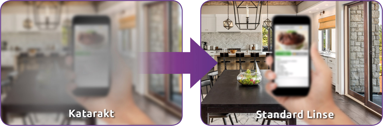 Together with Dr. Kretz, you will choose the right intraocular lens during a detailed consultation. He will focus on your individual wishes and needs, but will also take into account the results of the measurement of your eyes. Ultimately, you then have to decide on a lens and can choose from various models. Satisfactory results can already be achieved with a standard lens, but by choosing a special lens you can expect a better result and benefit from additional advantages.